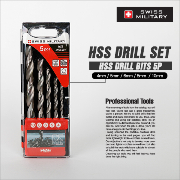 [스위스 밀리터리] HSS(금속) 드릴비트 SET (5P)/ BT-3 /금속 목재 플라스틱용