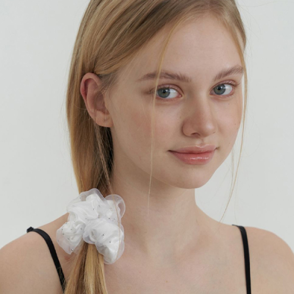 [New입점특가] 카인더베이비 kindababy sarah satin pearl scrunch - white