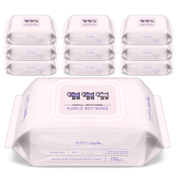 한예지 키스해링 '퍼플' 물티슈 캡형 100매 (10팩)