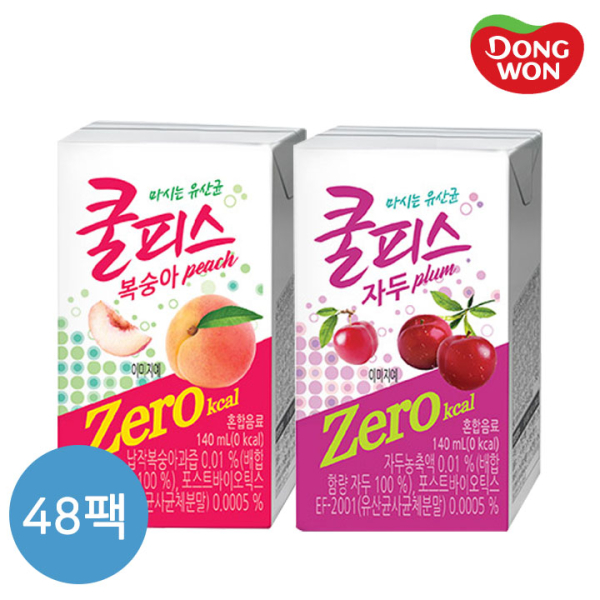 [동원] 쿨피스 제로 테트라 복숭아 140ml 24개 + 자두 140ml 24개