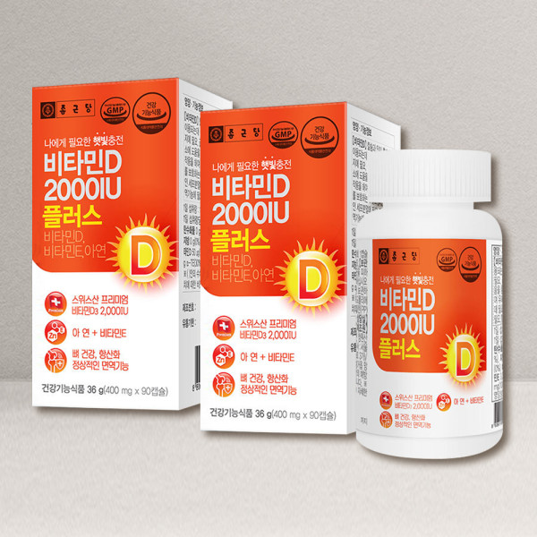 종근당 비타민D 2000IU 플러스 400mg 90캡슐 2개