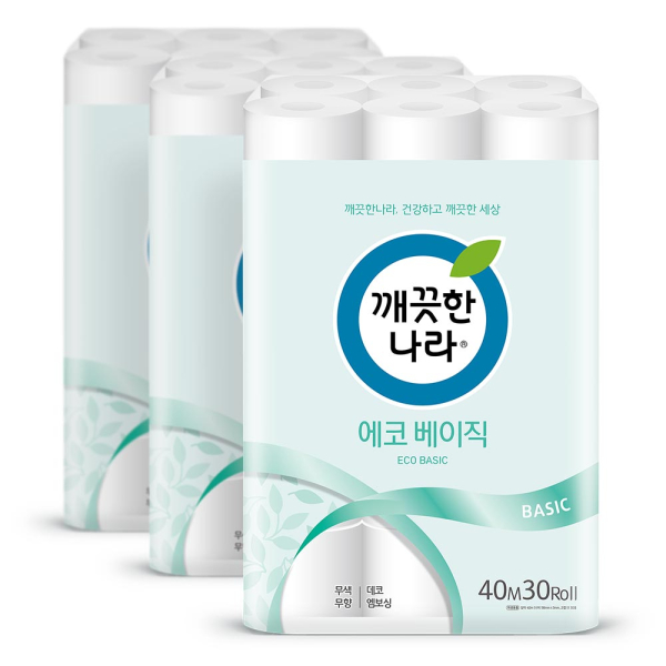 [깨끗한나라] 2겹 화장지 에코 베이직 40m 30롤 3팩