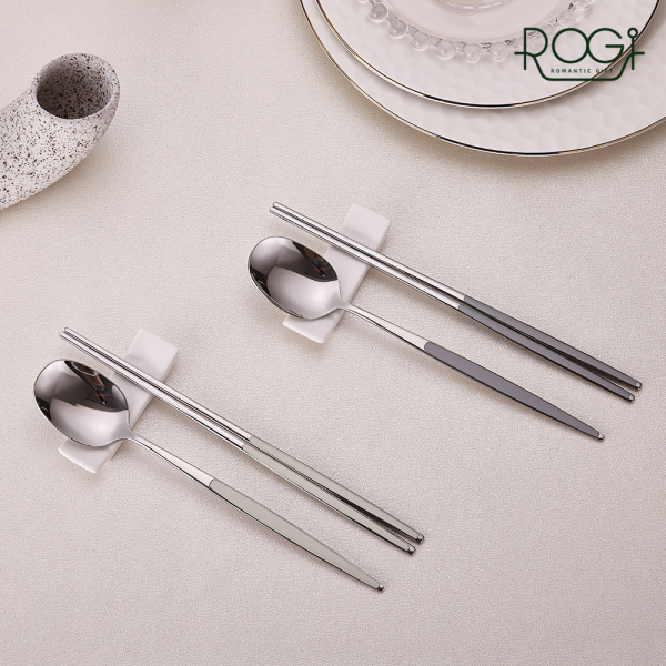 [쉬젤] 로기 colo 세라믹 수저 2조세트A (화이트크림+머드그레이) [품절]