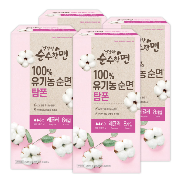 [깨끗한나라] 순수한면 유기농 탐폰 레귤러 8개입 4팩