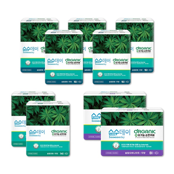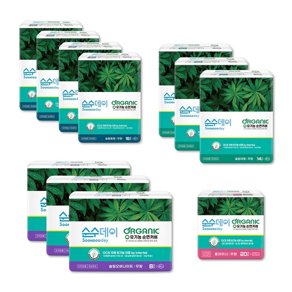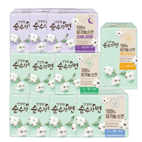 건강한 순수한면 유기농 순면 중형(16P) 4팩+대형(14P) 3팩+오버나이트(12P) 3팩+팬티라이너(40P) 1팩 [품절]