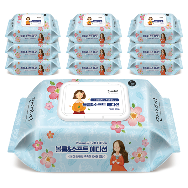 한예지 EDITION 볼륨앤소프트 물티슈 캡형 100매 (10팩)