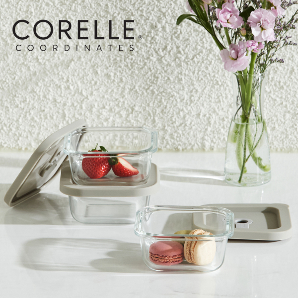 [코렐] 코디네이츠 실리콘 유리 밀폐용기 정사각 3종 [품절]