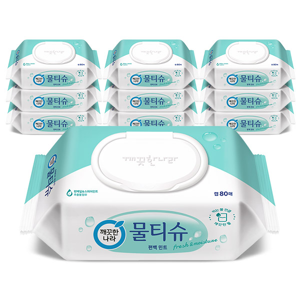 깨끗한나라 편백민트 물티슈 캡형 80매 x 10팩
