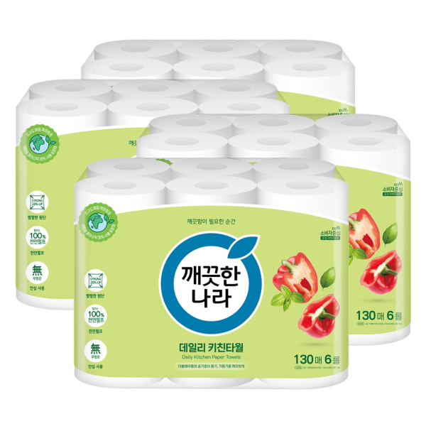 [깨끗한나라] 데일리 키친타올 130매 6롤 4팩
