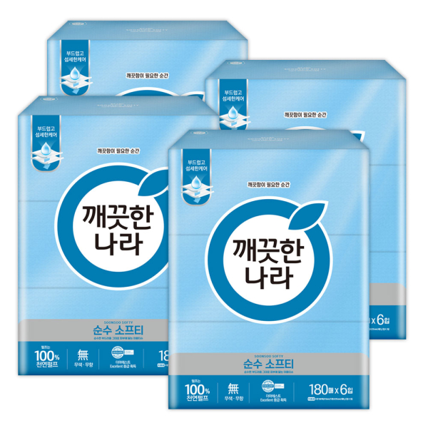 [깨끗한나라] 순수 소프티 미용티슈 180매 6입 4팩