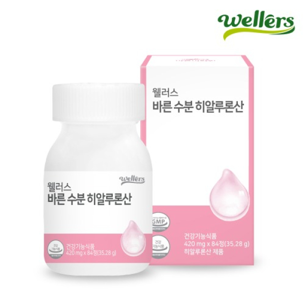 [웰러스] 바른 수분영양제 히알루론산(1병 420mg x 84정 12주) 피부보습 콜라겐 NO화학부형제 [품절]