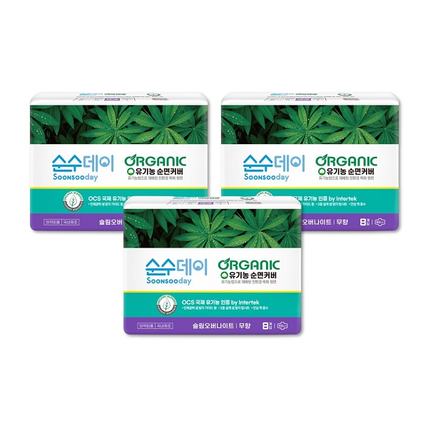 샐리의법칙★실속특가★순수데이 오가닉 프리미엄 유기농생리대 중형 3팩 + 대형 2팩 + 팬티라이너 1팩