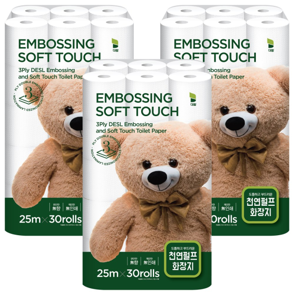 대왕 소프트 터치 천연펄프 30롤 3팩 90롤