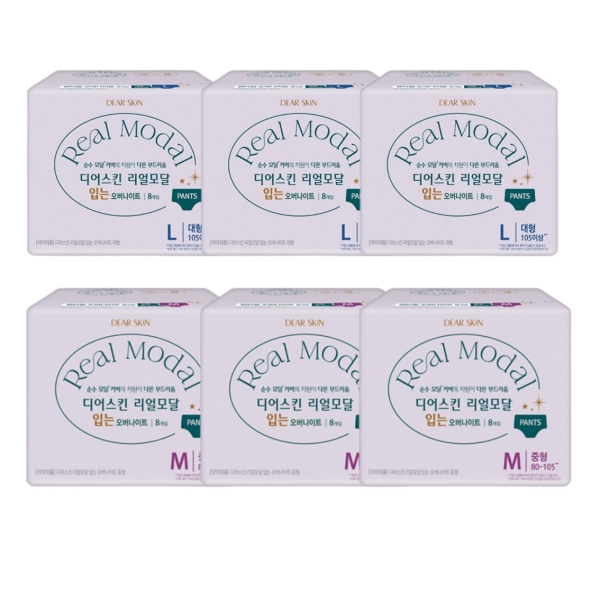 디어스킨 리얼모달 입는 오버나이트 중형(8P) 3팩+대형(8P) 3팩