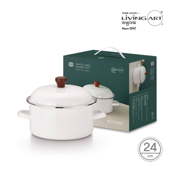 [리빙아트] 옥슨 법랑냄비 화이트라벨 양수 24cm [품절]