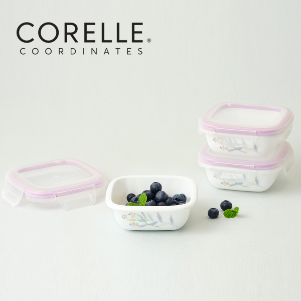 [코렐] 코디네이츠 밀크글라스 밀폐용기 산호세 정사각 3종 [품절]