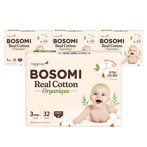보솜이 리얼코튼 오가니크 팬티 중형 32매 x 4팩