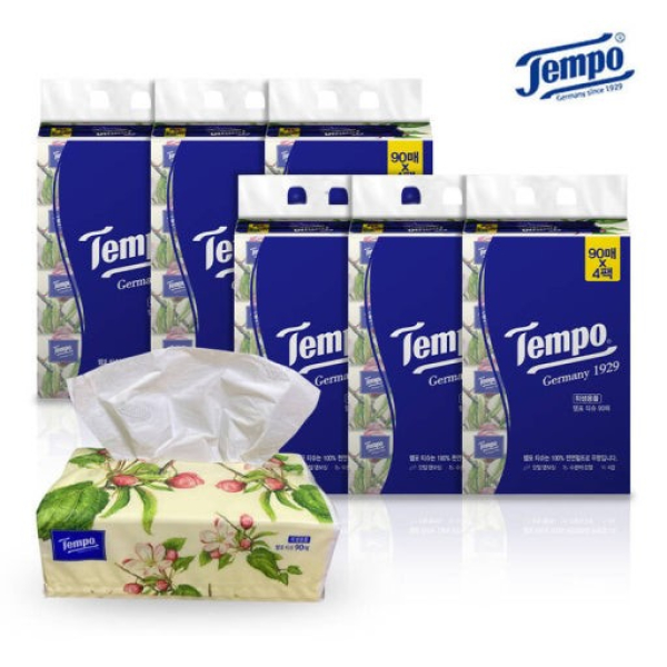 독일 템포 소프트팩 4겹 천연펄프 미용티슈 90매 4입 X 6팩