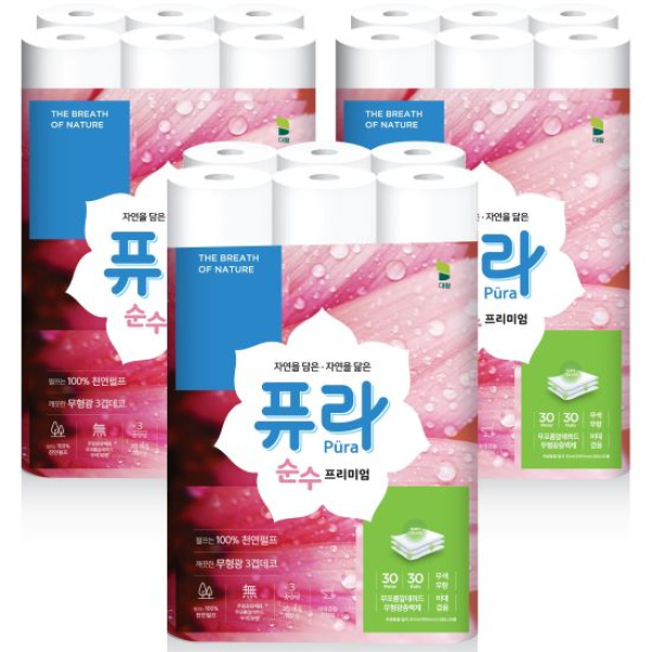 대왕 퓨라 천연펄프 화장지 3겹 25m*36롤*3팩 총 108롤 [품절]