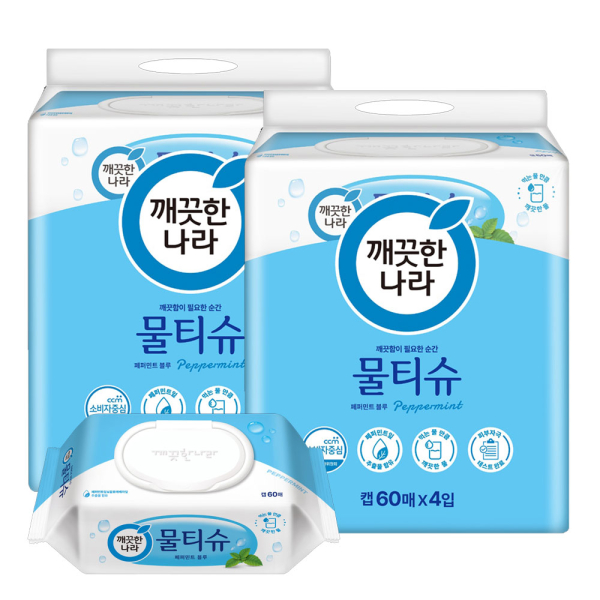 [깨끗한나라] 물티슈 페퍼민트 60매 4입 2팩 기획