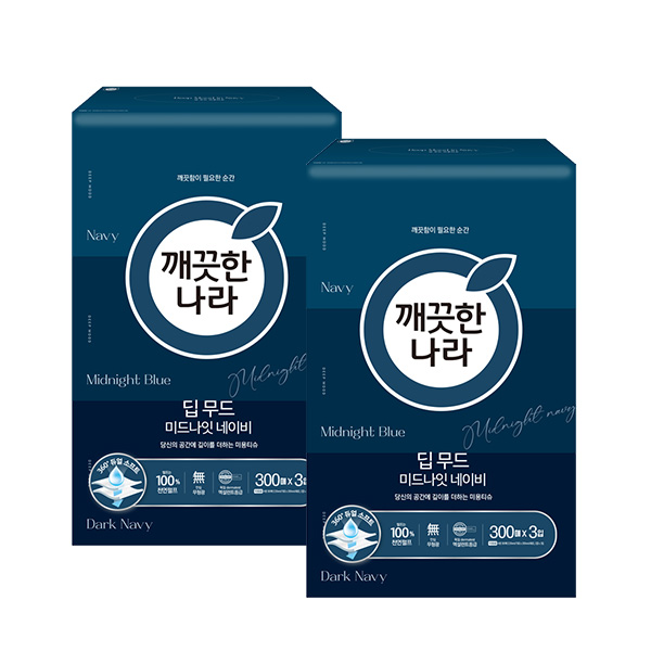 깨끗한나라 딥무드 미드나잇 네이비 300매 x 3입 x 2팩