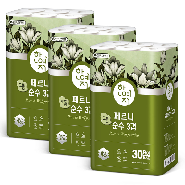 한예지 페르니 도톰순수 3겹 30M 30롤 (3팩)
