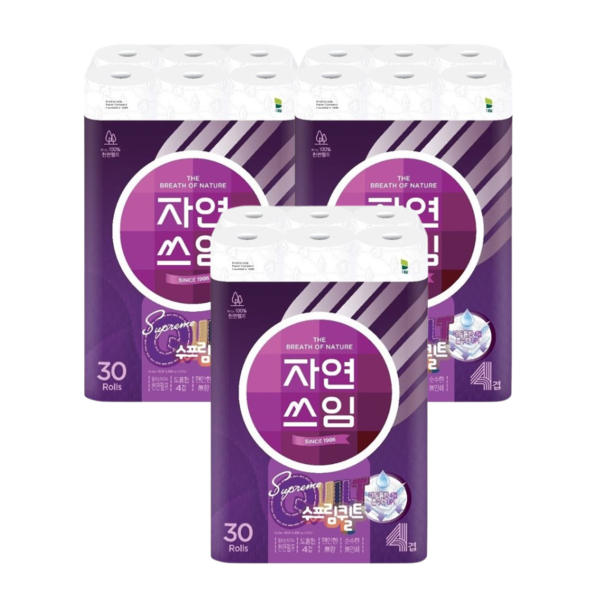 대왕 자연쓰임 천연펄프 수프림퀼트 화장지 4겹 30롤 3팩