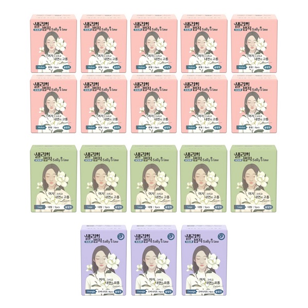 샐리의 법칙★실속특가★ 생리대 시그니처 중형 10팩 + 대형 5팩 + 오버나이트 3팩