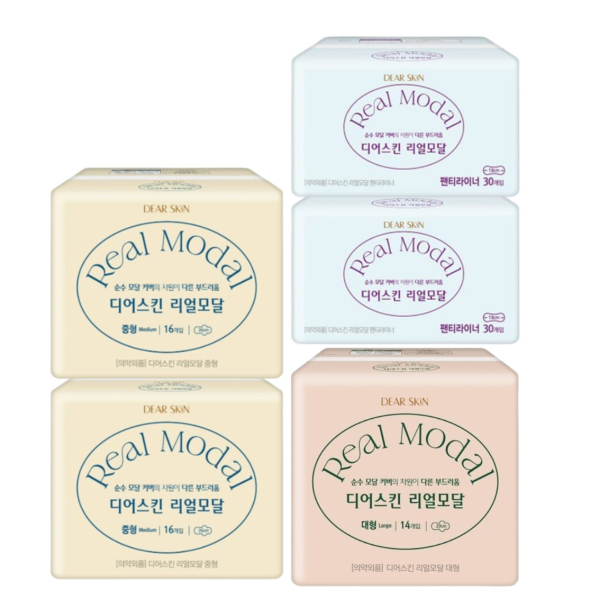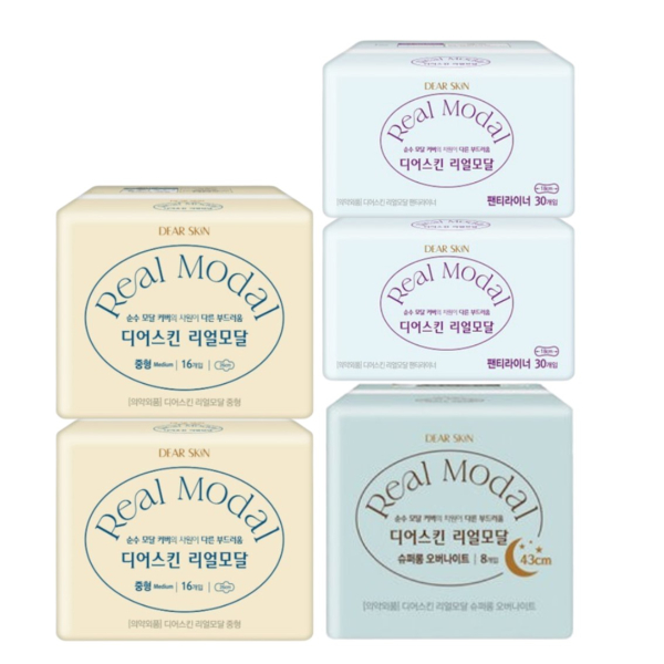 디어스킨 리얼모달 중형(16P) 2팩+오버나이트(8P) 1팩+팬티라이너(30P) 2팩
