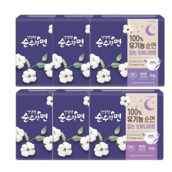 건강한 순수한면 입는 오버나이트 중형(4P) 3팩+대형(4P) 3팩 [품절]
