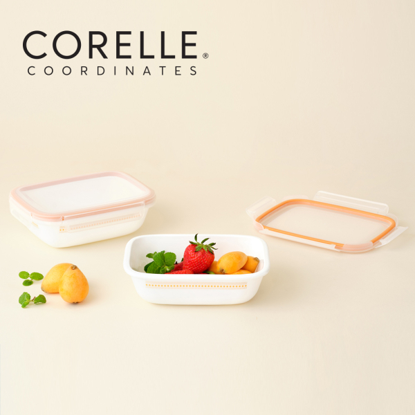 [코렐] 코디네이츠 밀크글라스 밀폐용기 자카드 밴드 직사각 2종(대) [품절]