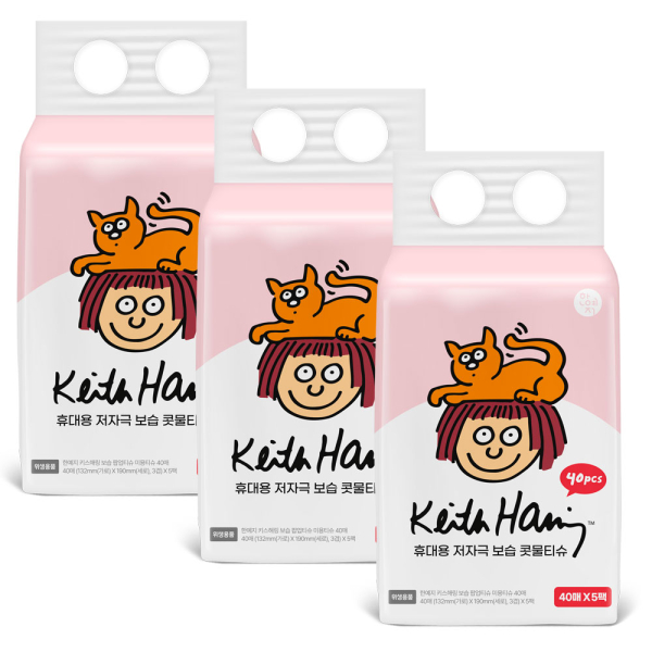 한예지 키스해링 휴대용 저자극 보습 비염 콧물 미용티슈 40매 5개 (3팩)_Copy