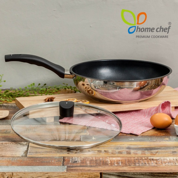 [홈셰프]IH인덕션 3중 스텐레스 궁중웍팬28cm+유리뚜껑