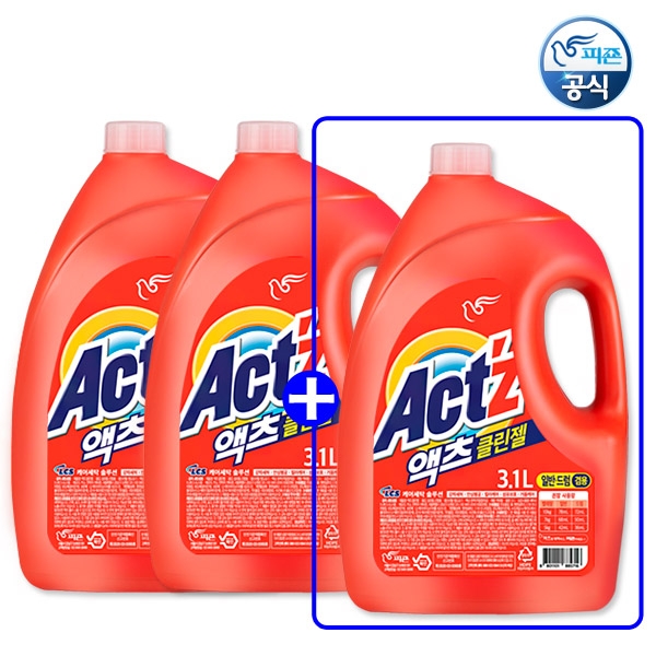 [특가]액츠 클린젤 세탁세제 일반드럼겸용 3.1Lx2 + 3.1L 추가
