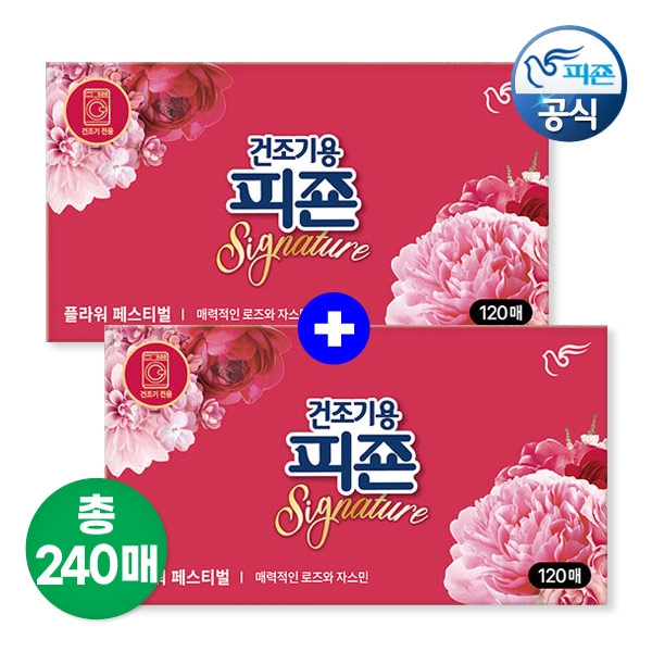 [특가]피죤 건조기용 섬유유연제 드라이시트 120매+120매 추가