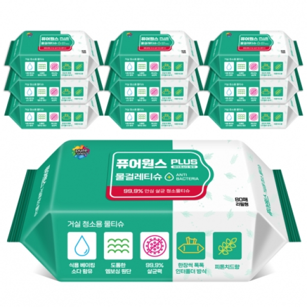 [퓨어원스+]홈케어 청소 살균물티슈 거실용 80매x10팩(리필형)