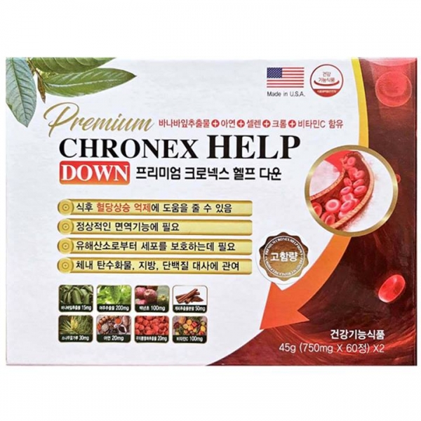 [미국직수입]프리미엄 크로넥스 헬프다운(혈당조절 상승억제 건강기능식품) / 45g(750mg*60정)*2박스