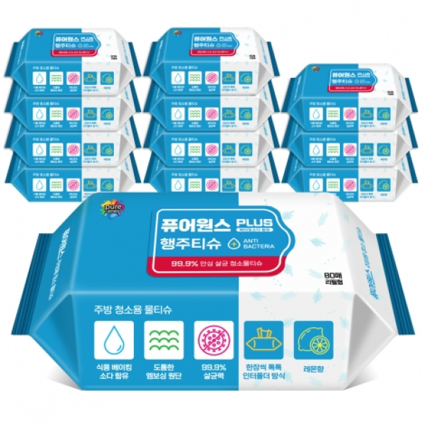 [퓨어원스+] 홈케어 청소 살균물티슈 주방용 80매x12팩/24팩(리필)