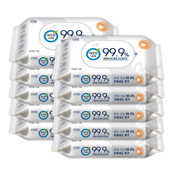 [깨끗한나라] 손소독 물티슈 휴대용 10매 10입