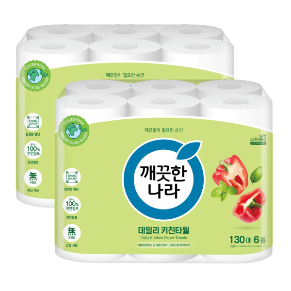 [깨끗한나라] 데일리 키친타올 130매 6롤 2팩