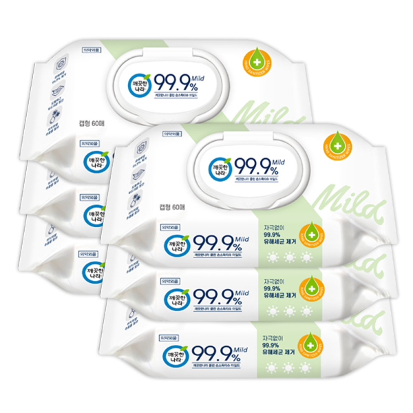 [깨끗한나라] 손소독 물티슈 마일드 60매 6입