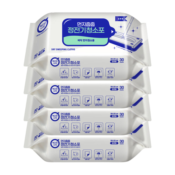 [깨끗한나라] 먼지줍줍 정전기 청소포 30매 4개(표준형)