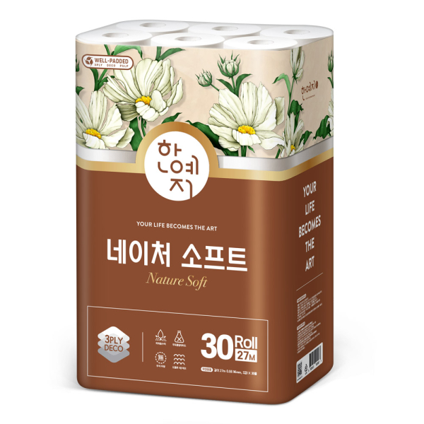 한예지 네이처소프트 3겹 27m 30롤 화장지 1팩