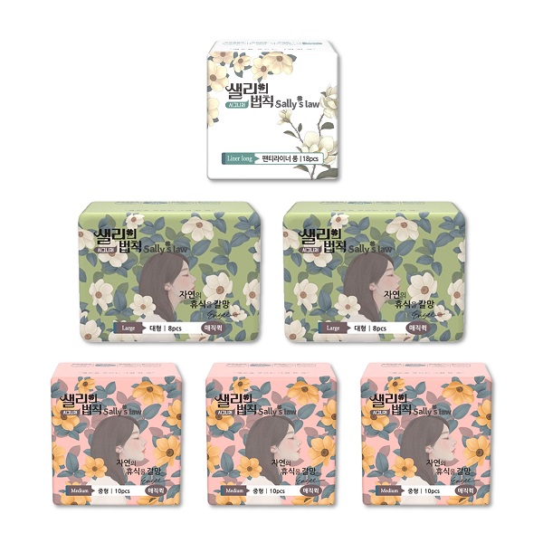 샐리의법칙★실속특가1★ 프리미엄 생리대 매직퀵 시그니처 중형 3팩 + 대형 2팩 + 팬티라이너 1팩