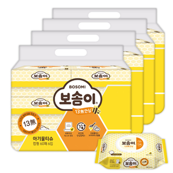 [깨끗한나라] 보솜이 안심물티슈 13무 60매6입 4팩