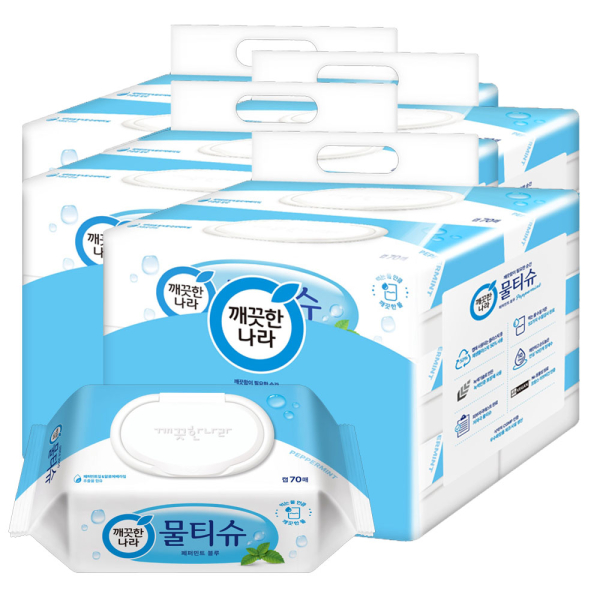 [깨끗한나라] 물티슈 페퍼민트 70매 6입 4팩