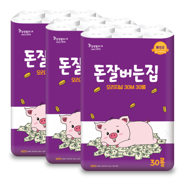 [삼정] 3겹 돈잘버는집 화장지 30m 30롤 3팩