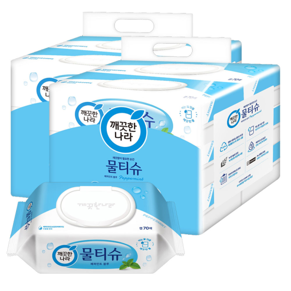 [깨끗한나라] 물티슈 페퍼민트 70매 6입 2팩