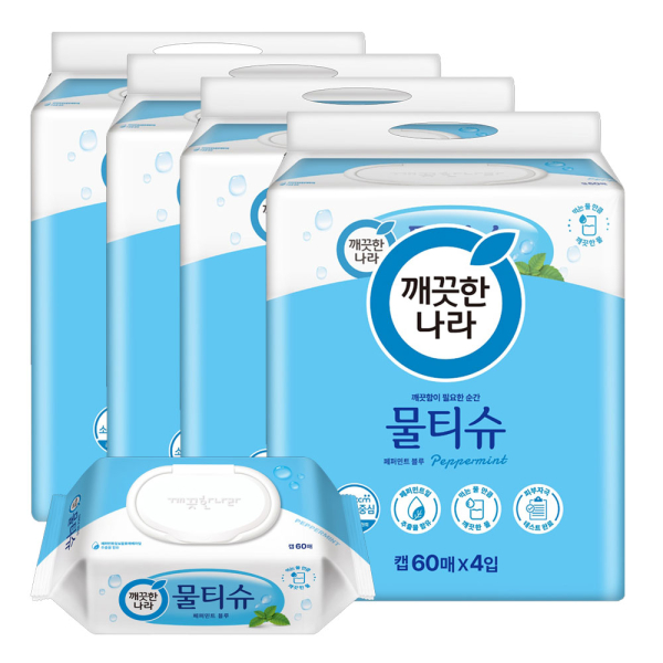 [깨끗한나라] 물티슈 페퍼민트 60매 4입 4팩 기획