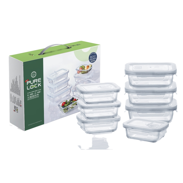 [네오플램] 피카원 글라스 모듈형 유리 밀폐용기 8종세트 (직사각530ml*3+정사각930ml+직사각1,300ml*2+1,600ml*2) (화이트) [품절]